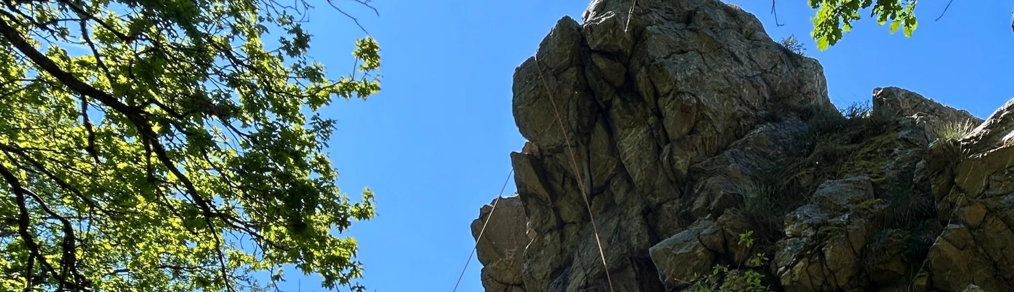Als schließlich alle eingetroffen waren, starteten wir gemeinsam ins Kletterwochenende. Schnell wurde klar: Am Mooswändchen würden wir keinen Platz finden – offenbar hatten sich dort sämtliche anderen Gruppen niedergelassen. Also zogen wir weiter ins Rolandseck und fanden dort ein ruhigeres Plätzchen.